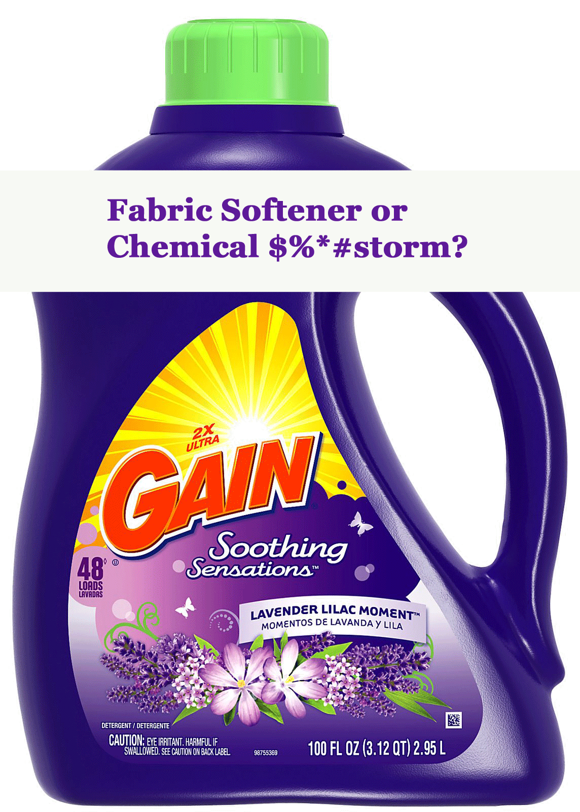 I chose a popular liquid fabric softener –GAIN Lavender Lilac Moment –and researched every single one of its ingredients for any potential health concerns: